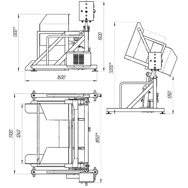 Fabricated from AISI 304 stainless steel, the tipper features a heavy-duty hydraulic system and a stable tilting mechanism. It's ideal for unloading into mixers, grinders, conveyors, or other downstream equipment.
