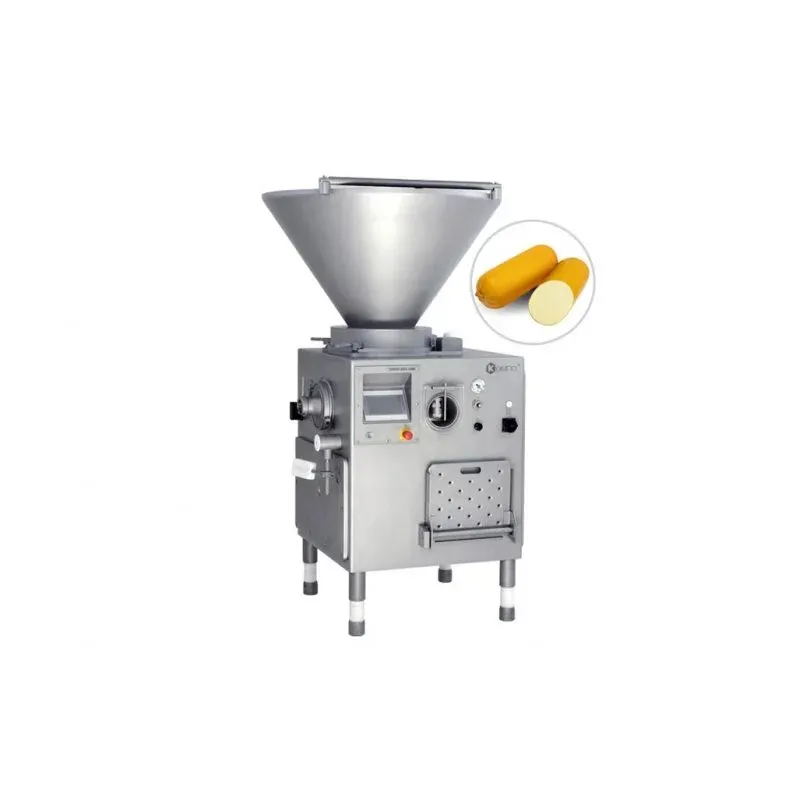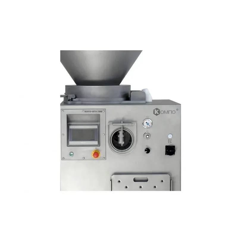 The vacuum stuffer KOMPO-OPTI is an optimum combination of quality, productivity and efficiency. Vacuum stuffers of the series OPTI are designed for filling various casings and additional vacuuming. They are adapted to a wide spectrum of meat processing and sausage manufacturing businesses, as well as, dairy packers with different outputs. KOMPO-OPTI fillers ensure a high quality of vacuuming when producing cheese chubs, which distinguishes them from similar equipment of other manufacturers. Due to many engineering solutions, every model is adapted to the customers’ requirements to the utmost.